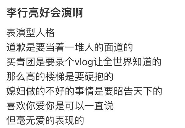 这个细节,被网友当成诊断李行亮「表演型人格」的铁证之一。