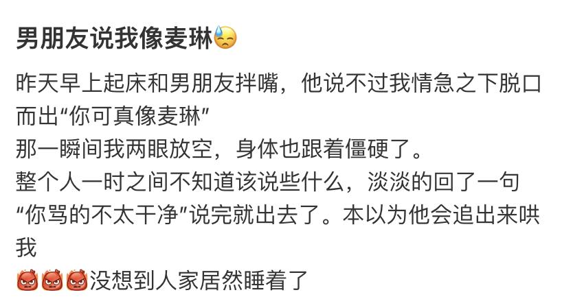 情侣吵架最恶毒的攻击,居然也变成了“你真的很像麦琳”。