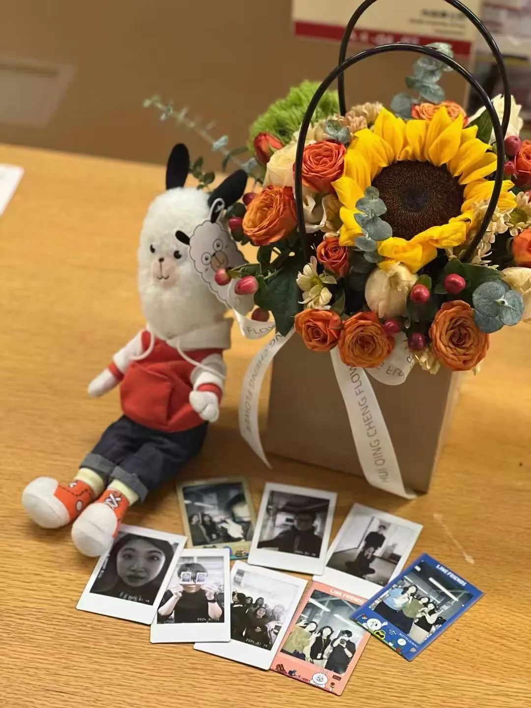 离职前的工位,摆满了大家的合影。(图/受访者供图)