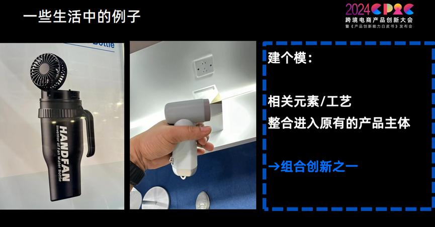 当然也有一些奇怪的设计:水杯上面嵌上一个风扇,用于户外的一些场景。这其实是一种组合创新方式。