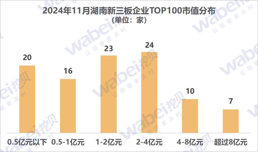 挖贝研究院梳理出2024年11月湖南新三板企业市值TOP100(以下简称:“榜单”或“TOP100”),7家企业市值超过8亿元,14家企业冲击北交所。