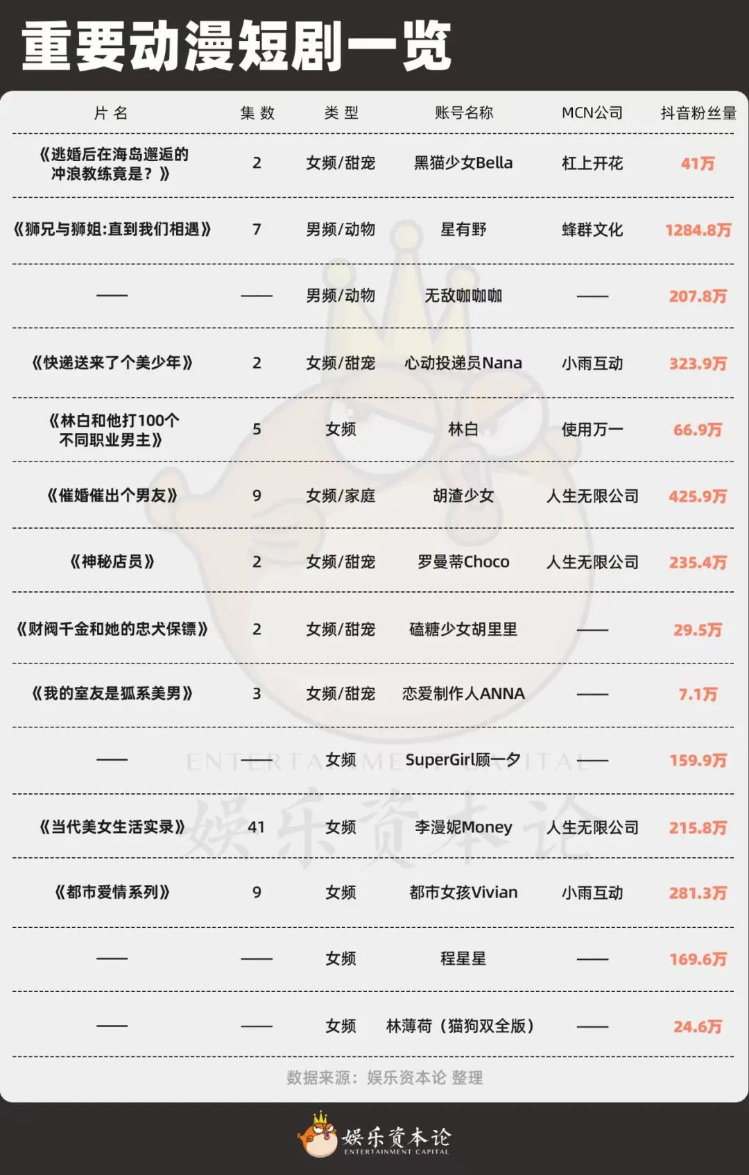 与娱乐资本论交流的各家MCN公司纷纷表示,广告植入是动漫短剧内容的主要收入来源。前面提到的几个头部账号,现在几乎每条视频都有广告产品的投放。