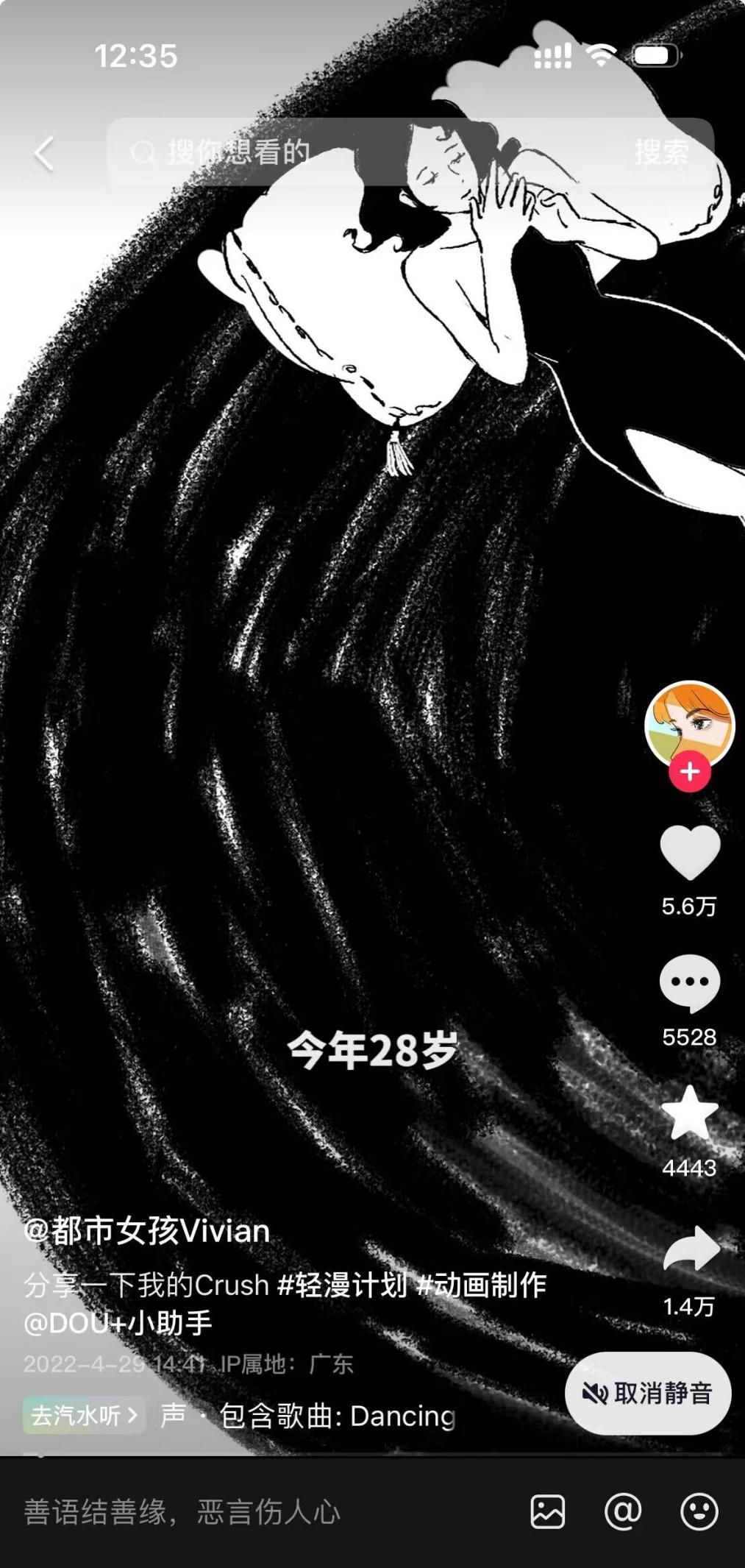 不知道是哪天,林悦(化名)的抖音信息流里出现了一段动画视频。 视频里, 都市女孩Vivian在为给朋友送什么礼物发愁。 和男朋友一番讨论之后 ,Viv i an 意识到了自己在送礼物这件事上的拧巴之处, 选择了回归内心的宁静。 最后,Vivian在得物上给自己买了台胶片相机 。