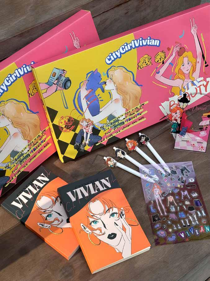 目前,Vivian与多位真人博主进行了跨次元合作。Vivian的表情包已经在微信上线。去年,美妆品牌丸美举办了“显眼女孩”主题展线下打卡活动,都市女孩Vivian参与了此次活动,线下人流曝光量超过28万。可以说,大部分的IP衍生方向,“都市女孩Vivian”都已经进行了尝试。