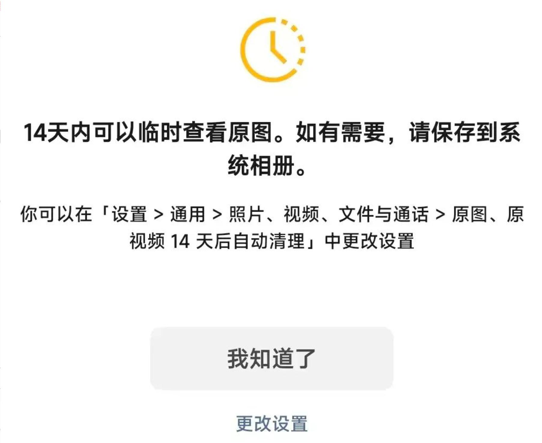 总之,目前微信正在灰度测试的“原图、原视频14天后自动清理”功能,对大部分用户来说还是很实用的,满足了发送原图原视频和后续查看普通画质的需求。