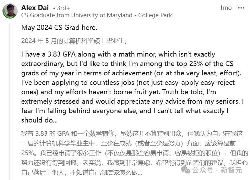一名学生说,自己GPA 3.83,辅修数学,在这一届计算机毕业生中应该算前25%了。