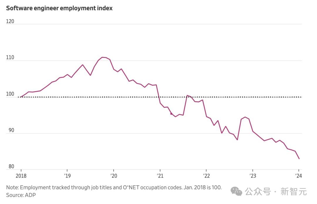 数据显示,自2020年2月以来,软件开发岗位的招聘广告数量已经下降了超过30%。