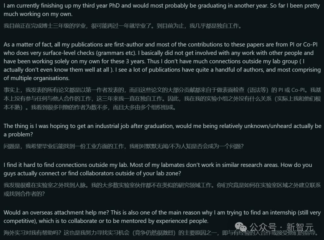 而且,他发现自己很难建立实验室之外的联系,大多数实验室伙伴跟自己的研究领域也并不相干。