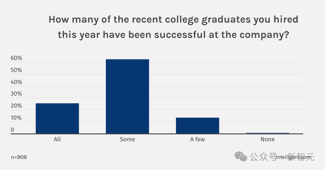 报告指出,仅有25%的公司表示所有应届毕业生表现优异,而62%的公司表示只有部分表现优异。
