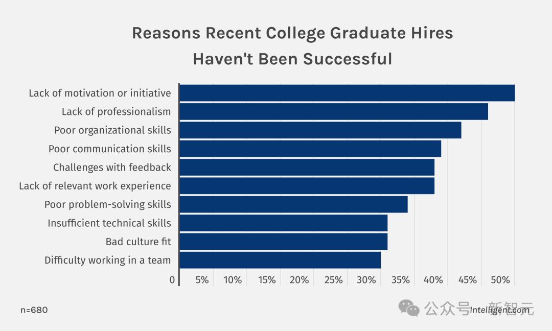 其中一个关键因素是——公司认为应届毕业生没有为职场做好准备,无法应对工作量,且表现不够专业。