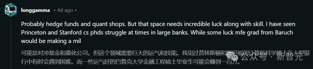 或者,可以去卷对冲基金和量化。这个行业空间很大,可能普林斯顿和斯坦福的计算机博士举步维艰,但Baruch硕士生却能拿到百万年薪。
