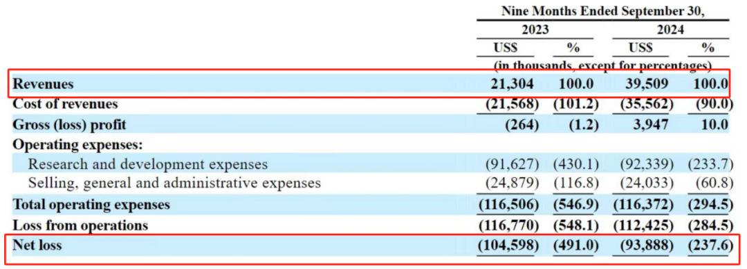 这家成立于2016年的企业,在近三年的时间里(2022年至2024年前三季度),累计亏损高达3.67亿美元,折合人民币约26.59亿元。