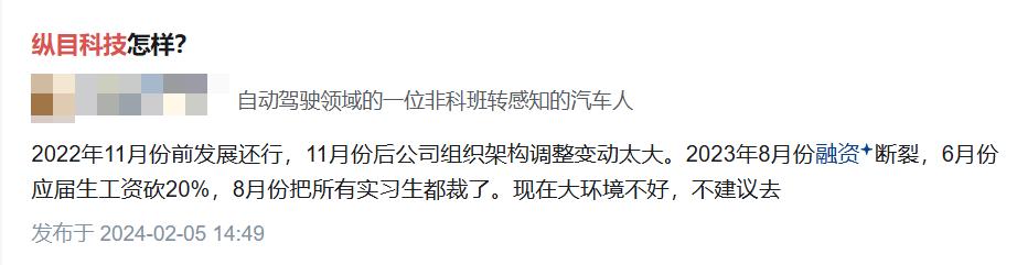 前纵目员工透露,2023 年上半年纵目业绩确实不行,下半年业绩上来了,因为拿到某头部车厂高阶智驾业务。但后续因为软件架构不合理,人员冗余,政治斗争等因素,纵目行车产品和高阶智驾技术上迟迟没有重大突破,项目开发和交付进度缓慢,导致合作的车企明星车型交付延期。
