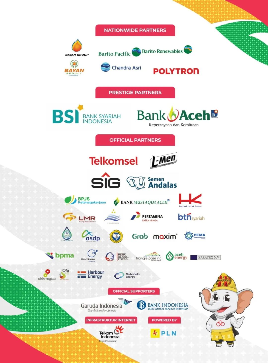 奥运之外,印尼当地其他特色赛事及综合赛事同样值得关注。例如全民体育周(Pekan Olahraga Nasional),是印度尼西亚每4年举办一次的综合性体育赛事。该赛事的参赛者是来自印度尼西亚所有省份的运动员,由印度尼西亚国家体育委员会(KONI)主办。在全民体育周赛事官网,我们查询到该赛事共拥有全国合作伙伴、尊贵合作伙伴、官方合作伙伴在内6个类别39家赞助商,其中绝大部分为印尼本土企业,但仍有包括英国原油公司Harbour Energy在内极少数海外企业参与。对于中企而言,想要深度参与印尼本土传统赛事,赞助难度不低,但若能找到合适的进入窗口与时机,也会成为扎根本地的有力营销方式。