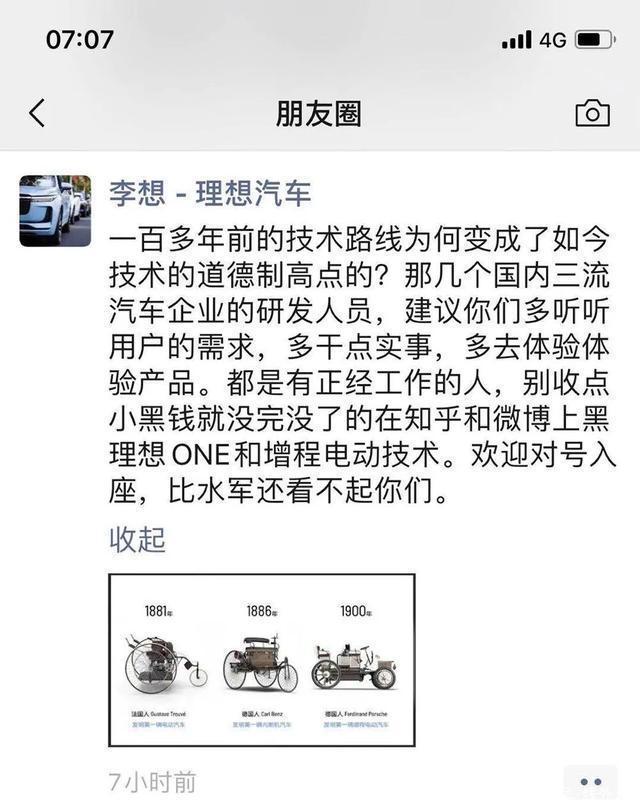 2020年,一张李想朋友圈的截图流出,将矛头指向了只懂“落后的燃油车技术的黑子”。