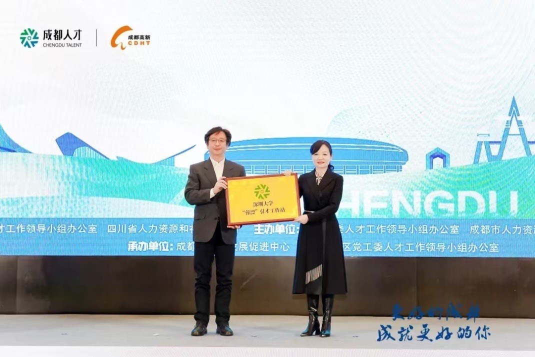 活动现场,成都市委人才办携手深圳大学建立了“蓉漂”引才工作站,并举行授牌仪式。工作站将发挥招才引智“前哨站”、就业创业“信息站”、高校青年人才“服务站”作用,面向城市发展、产业发展等人才需求,开展人才和项目资源收集分析、城市发展环境推介、就业创业政策宣传等工作,实现引才关口前移、常态长效在校引才,建立校地合作新模式。