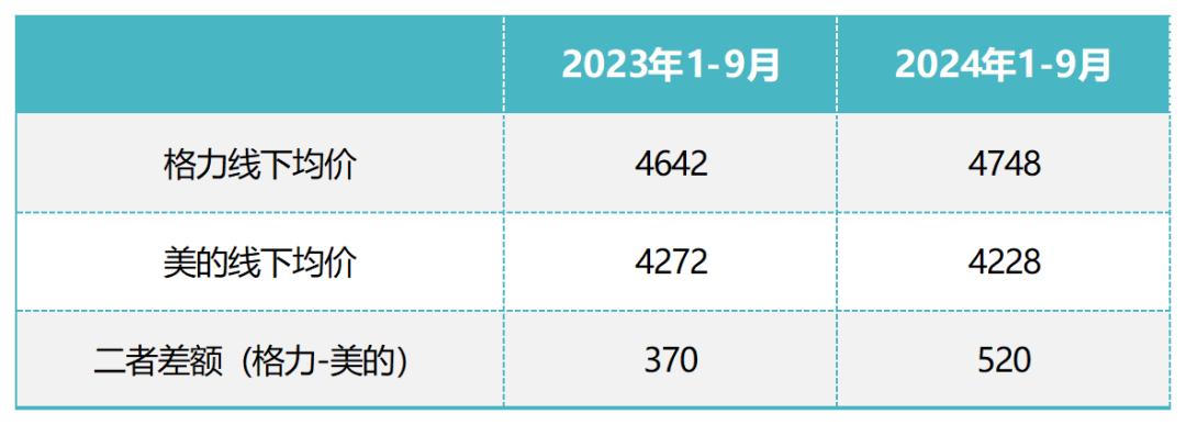 略大参考基于奥维云网公开数据计算发现,2024年前9个月,格力和美的在空调方面的线下销售额的均价差额数为520元,较2023年370元的差额有着明显上升。