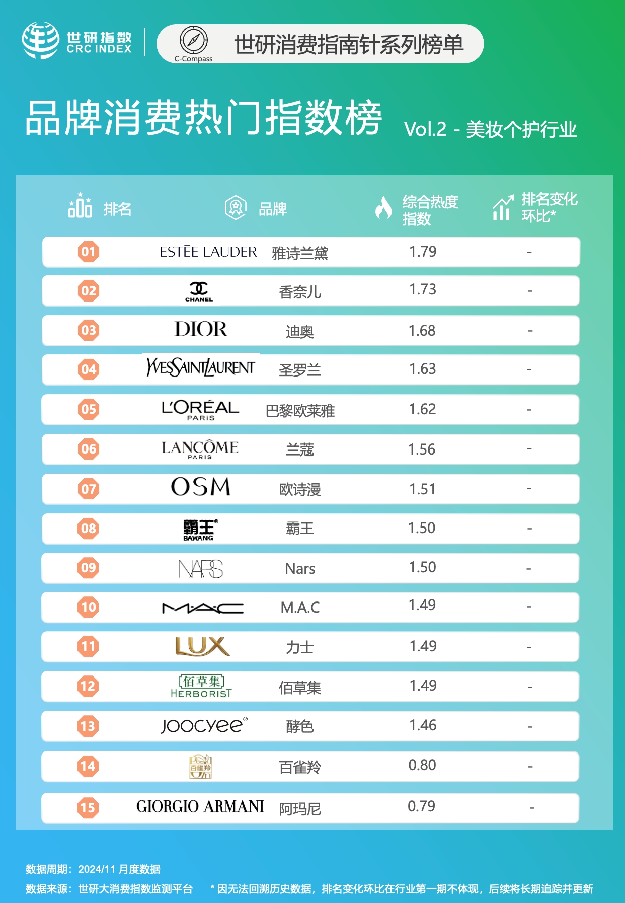 11月品牌消费热门指数排行榜Vol.2——美妆个护行业分榜