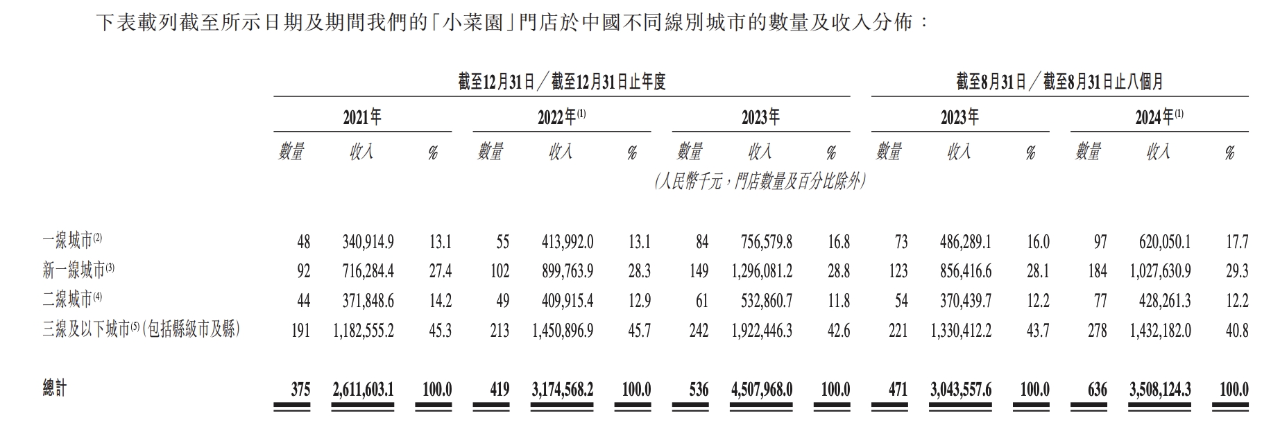 冲刺 IPO 这一年,小菜园交出了一份增长成绩单: 品牌门店数从 2023 年的 536 家,增至截至今年 8 月30 日的 636 家,即前八个月平均每个月开出 12.5 家。营收从去年前八个月的 30.4亿元,增至今年同期的35.1亿元。