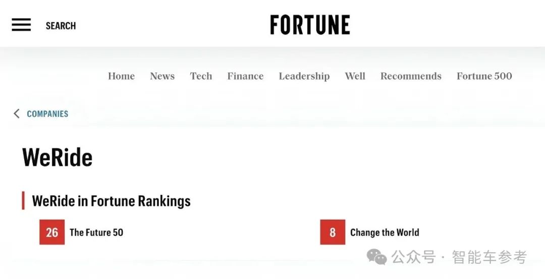 榜单中有两家中国科技公司,文远知行位列第26名,是全球榜单中排名最高的自动驾驶科技公司。