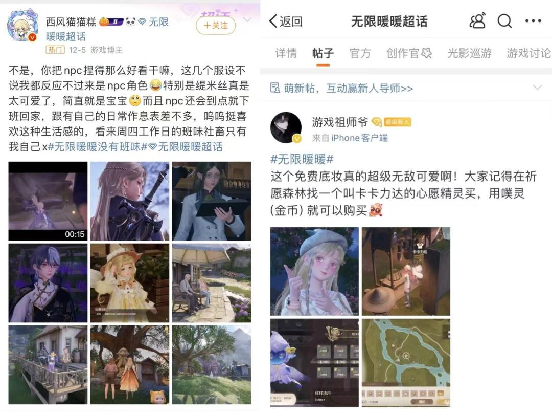 不难看出,想要避免诸多“雷点”,就需要能够与玩家进行即时交流。更进一步,与其说乙女游戏的next level是“娱乐圈”,用“生活圈”似乎更加贴切。随着游戏行业加速大众化、生活化,用户们在综合社交平台围观与参与游戏类话题正在成为习惯,通过社交平台被“安利”的状态,也将越来越常见。《无限暖暖》开测后,就有许多玩家聚集在超话下讨论如何“佛系养女儿”。