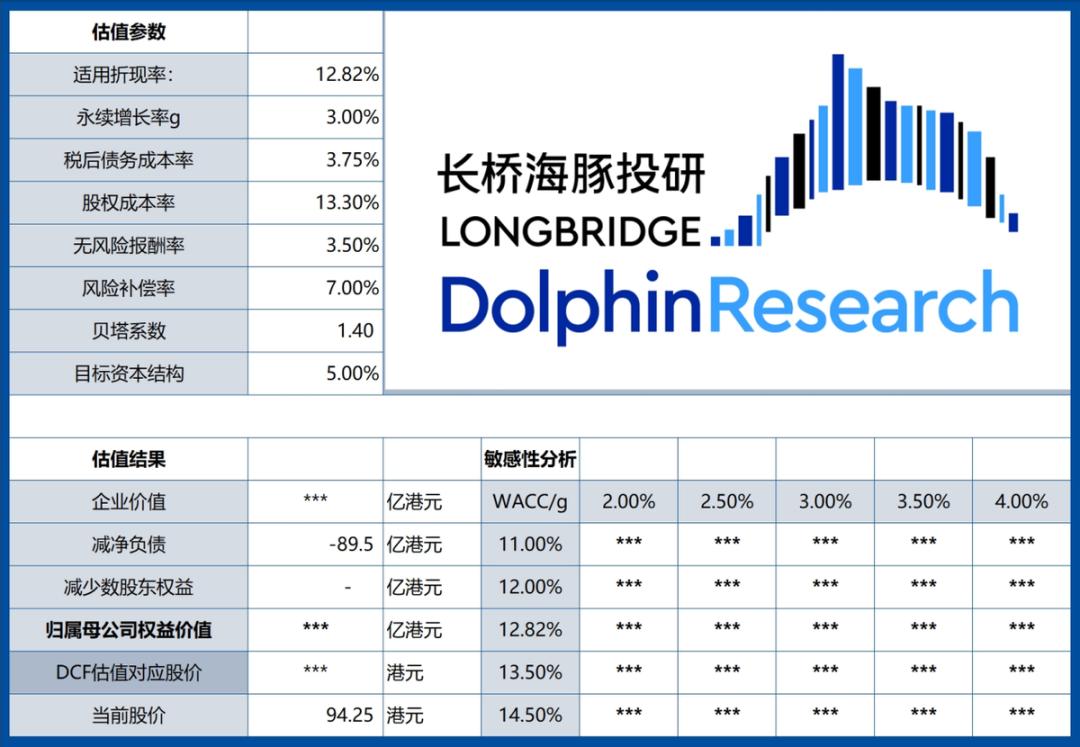 在估值核算上,海豚君用了两种方法,PE+SOTP和DCF两种方法来验证汇算。在DCF估值下,按照3%的永续增长率、13%的WACC。两种情况下的估值基本相互验证,考虑到IP产品周期的不确定性,DCF折现下,对WACC给出了相对高的要求。
