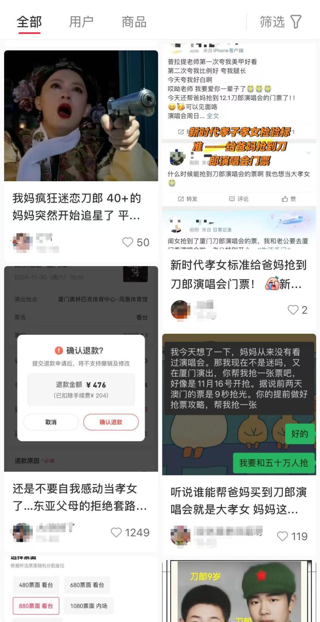 可刀郎的演唱会,他发动了同事、堂亲、表亲一大堆,硬是连门票的影子都没见到。
