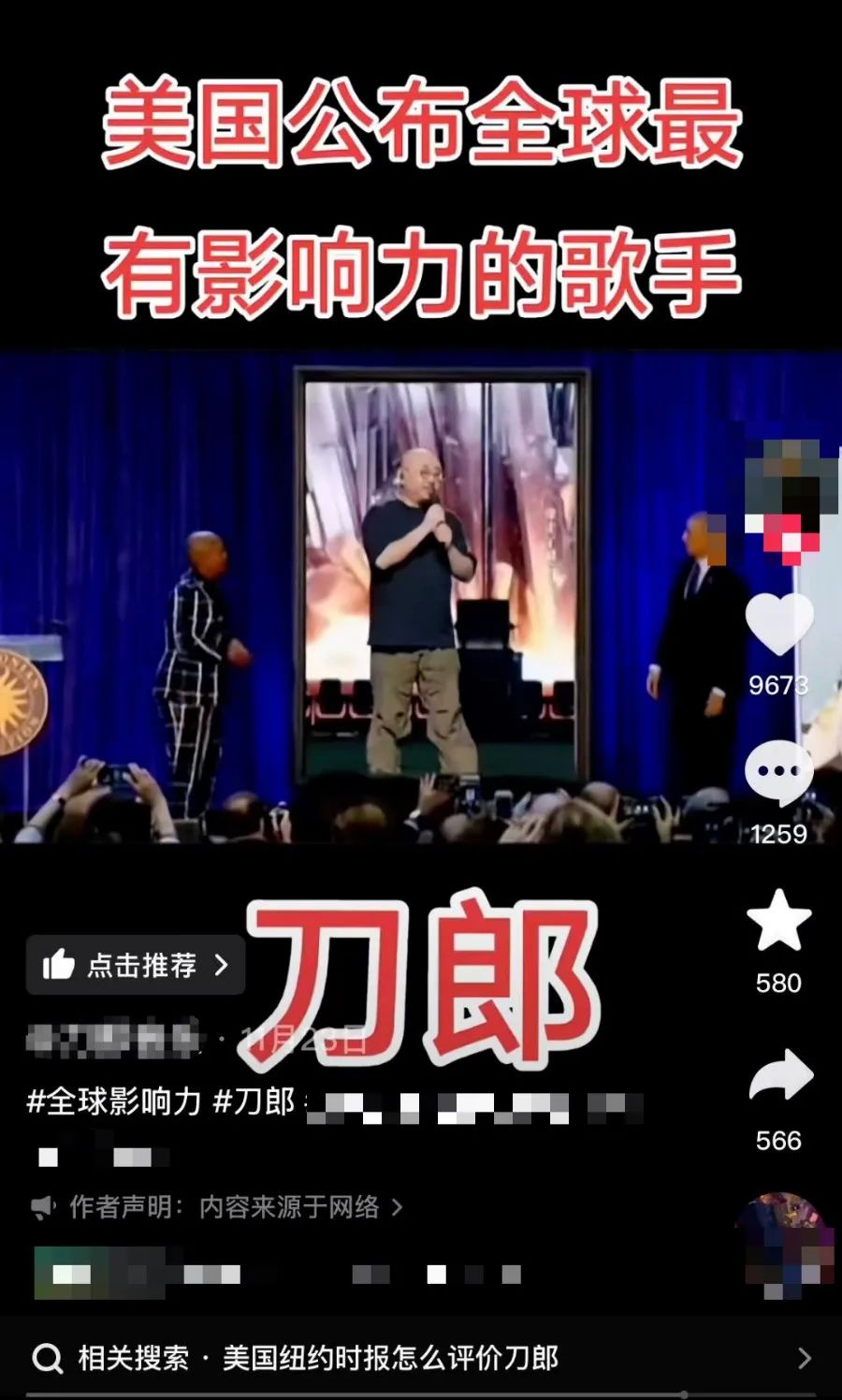 美国权威媒体《纽约时报》在头版刊登评论员文章,赞美刀郎是中国“真正的音乐人”;