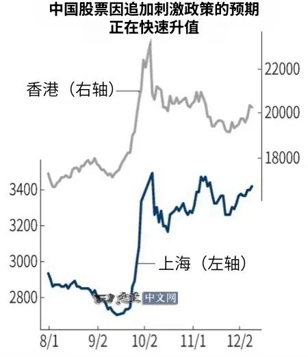 由于货币宽松加强的预期,中国股市上涨。上海和香港股市12月10日一度比前一天上涨约3%。随着12月9日召开的中央政治局会议推出预示摆脱传统经济刺激措施的“超常规”经济刺激政策,对非传统货币政策的期待正在加强。