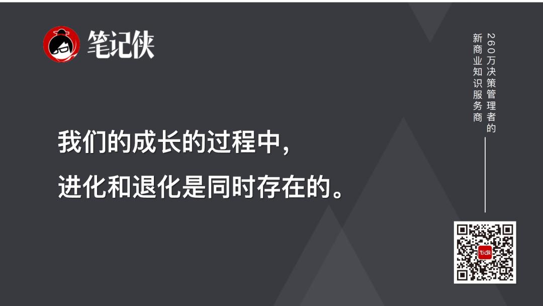 所以,进化和退化是同时存在的。我们在成长的过程中,实际上是一边在进化,一边也在退化。不要以为成长就完全是进化。