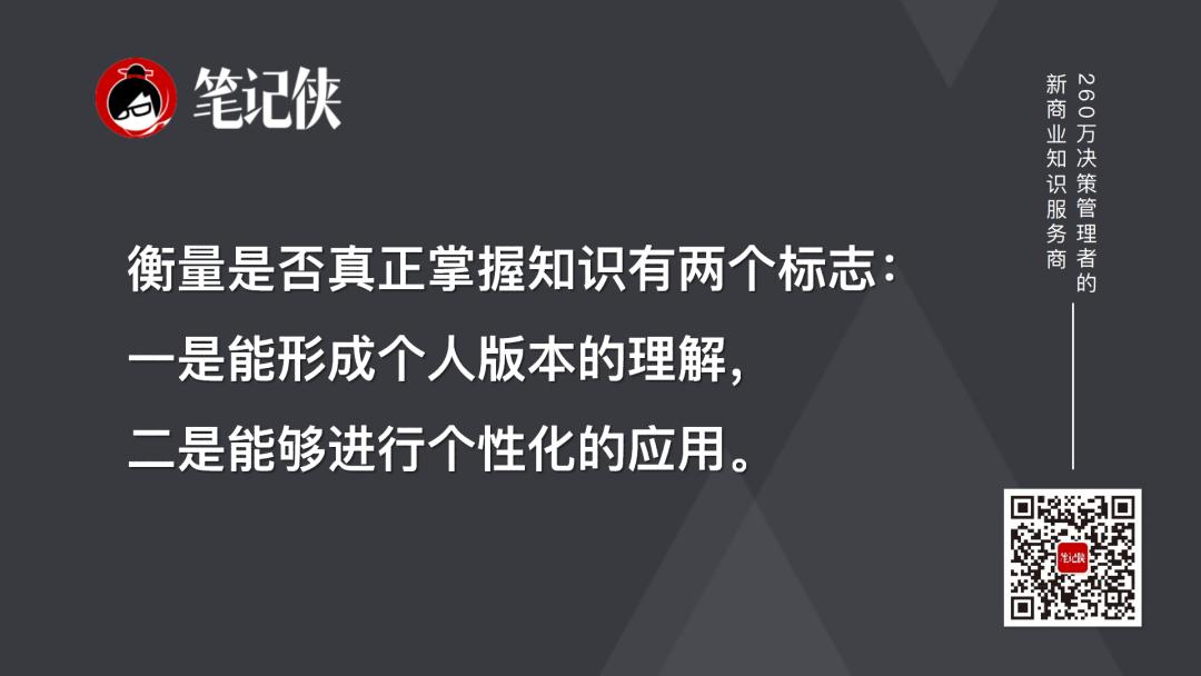 衡量是否真正掌握知识有两个标志:一是形成个人版本的理解,二是能够进行个性化的应用。