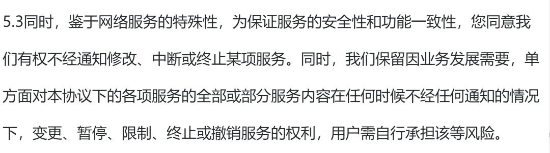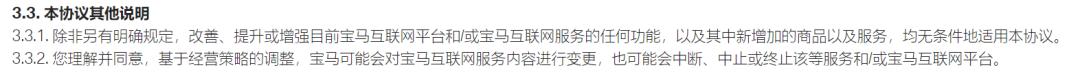 要我说这些车企也太狗了,仅凭借这样一条藏在犄角旮旯里的条款,就可以随时终止向车主提供网络服务,还不用承担任何法律责任。