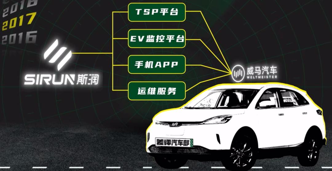 之所以会这样,是因为在 2017 年,威马汽车把自己的 TSP 平台、 EV 监控平台、手机 APP 和运维服务等,都交给车联网服务供应商斯润天朗。