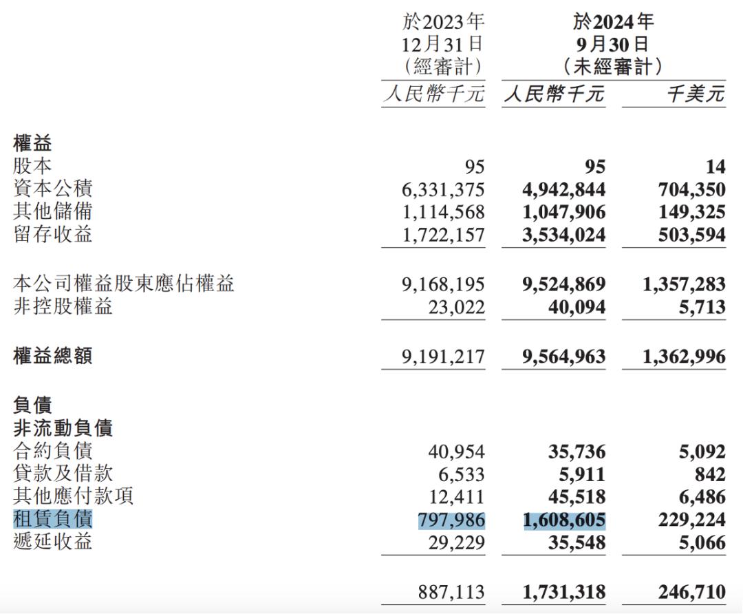 其租赁负债,从去年同期的7.98亿元,急升至了16.09亿元,增长超过了一倍。
