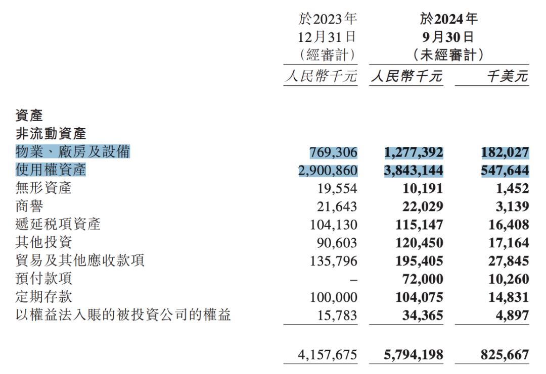 其物业、厂房及设备也从7.69亿元,增至了12.77亿元。使用权资产从29亿元,增长至了38.43亿元。