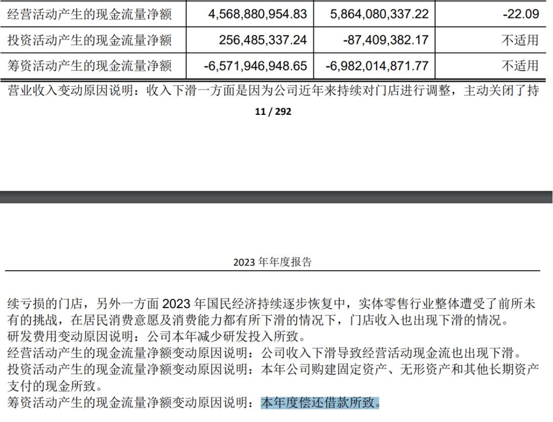 其中还债就是其现金流迅速恶化的主要原因,因为还债,永辉超市,筹资活动现金流去年与今年同期分别流出了69.82亿元以及65.71亿元。