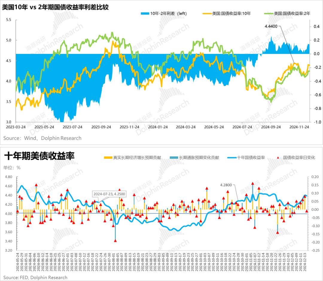这样的通胀数据出来,不会影响美联储对短期利率的降息步伐,但会拉高长期经济增长预期,所以结果就是10年期美债收益率加速回升,而期限利差再次走峭。