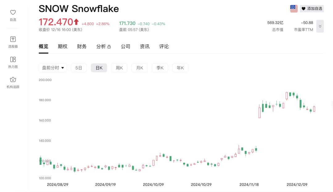Snowflake股价和市值(图源:富途牛牛)