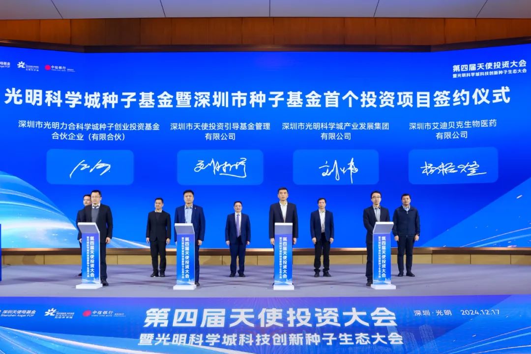 深天使、光明科发集团、力合创投、艾迪贝克,进行了光明科学城种子基金暨深圳市种子基金首个投资项目签约。自深圳市科技创新种子基金发布以来,光明区高度重视种子基金设立工作,2024年9月,首支专注于科技创新的种子基金——光明科学城种子基金正式落户光明科学城。12月完成首个投资项目决策,标志着光明区在推动科技创新生态构建、助力科技企业成长方面迈出了重要且创新的一步,未来将吸引更多优质资源,持续赋能科技产业蓬勃发展。