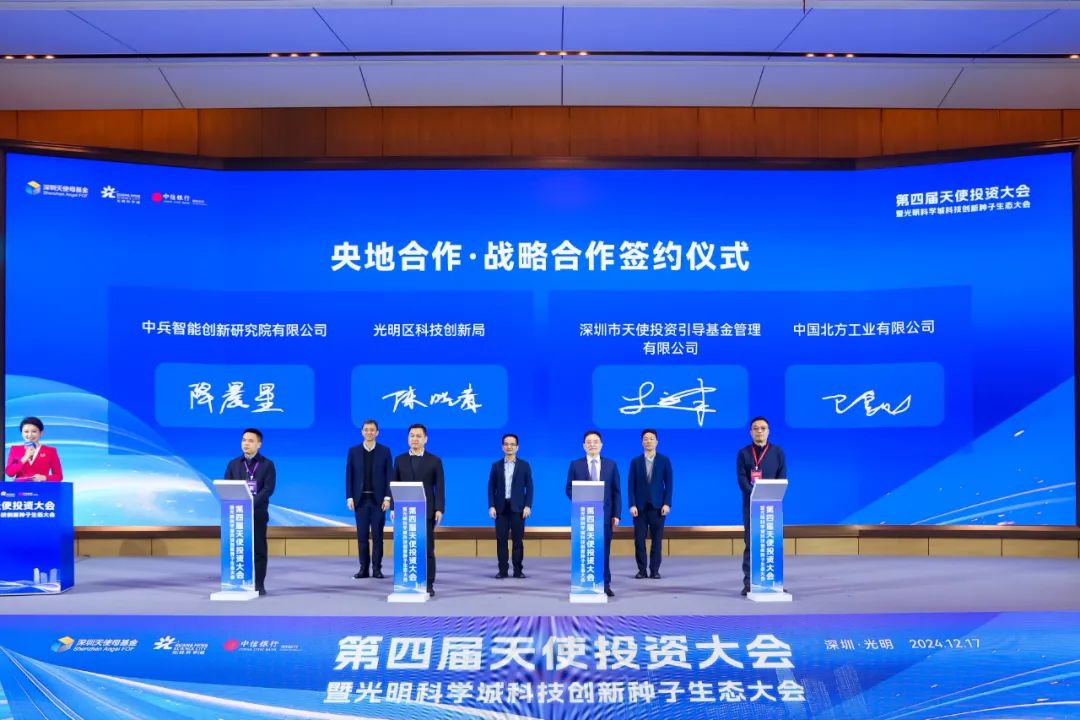光明区科技创新局、深天使与中兵智能创新研究院、中国北方工业公司,共同签署了央地战略合作协议。未来,将联合开展无人智能装备领域的研发制造和工程技术创新,通过深化央地合作实现优势互补,为推动经济发展和科技创新提供强劲动力。