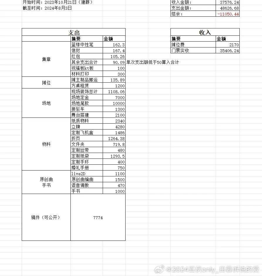 在小红书上,我也见到了不少Only主办方放出收支明细,几乎无一例外的,都以亏损居多。