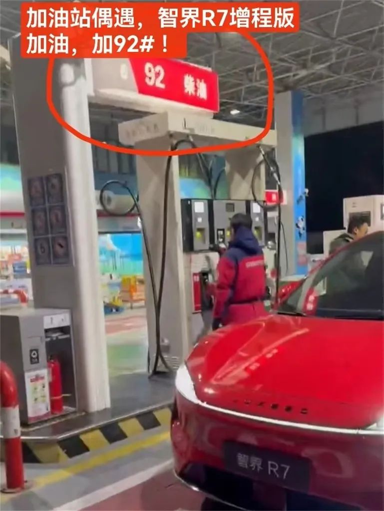 ▲网友目击智界R7正在加92号汽油(图源网络)