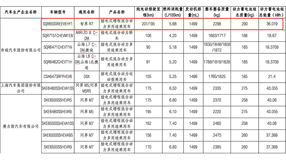 ▲智界R7增程版申报图
