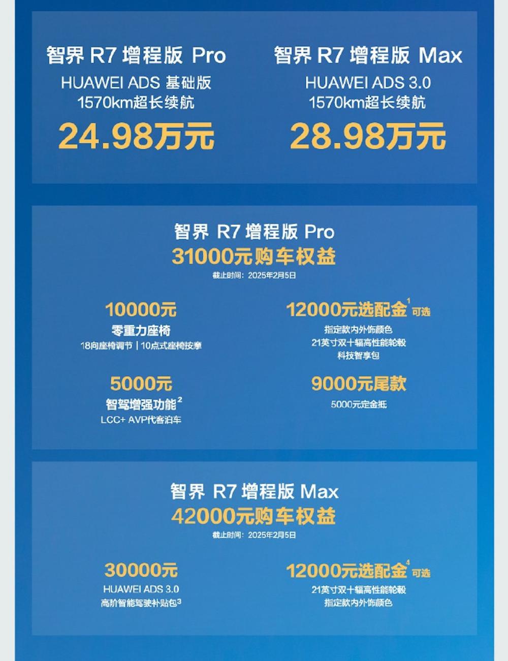 ▲智界R7增程版首发价格及权益