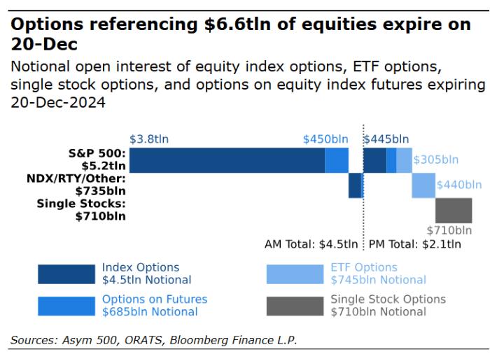 今年的期权到期预计将创下历史新高,涉及的名义价值超过6万亿美元。根据Asym 500的数据,期权到期的具体金额为6.6万亿美元,部分机构甚至估算这一数字将达到7.7万亿美元。这一庞大的期权到期规模,可能为市场带来剧烈波动,尤其是在当前充满不确定性的经济环境下。