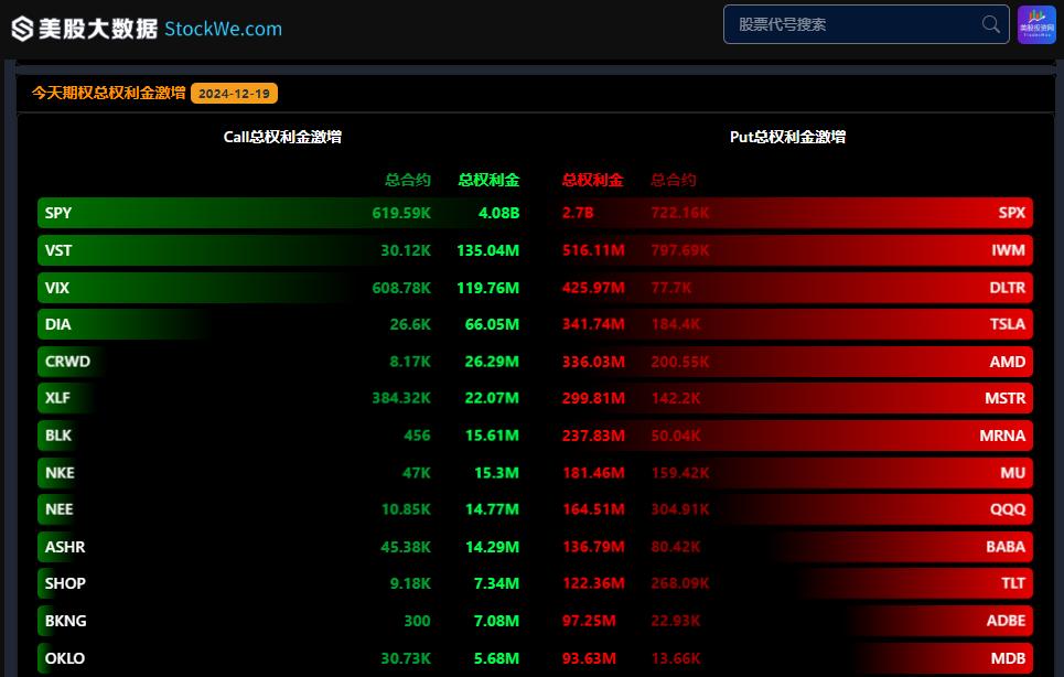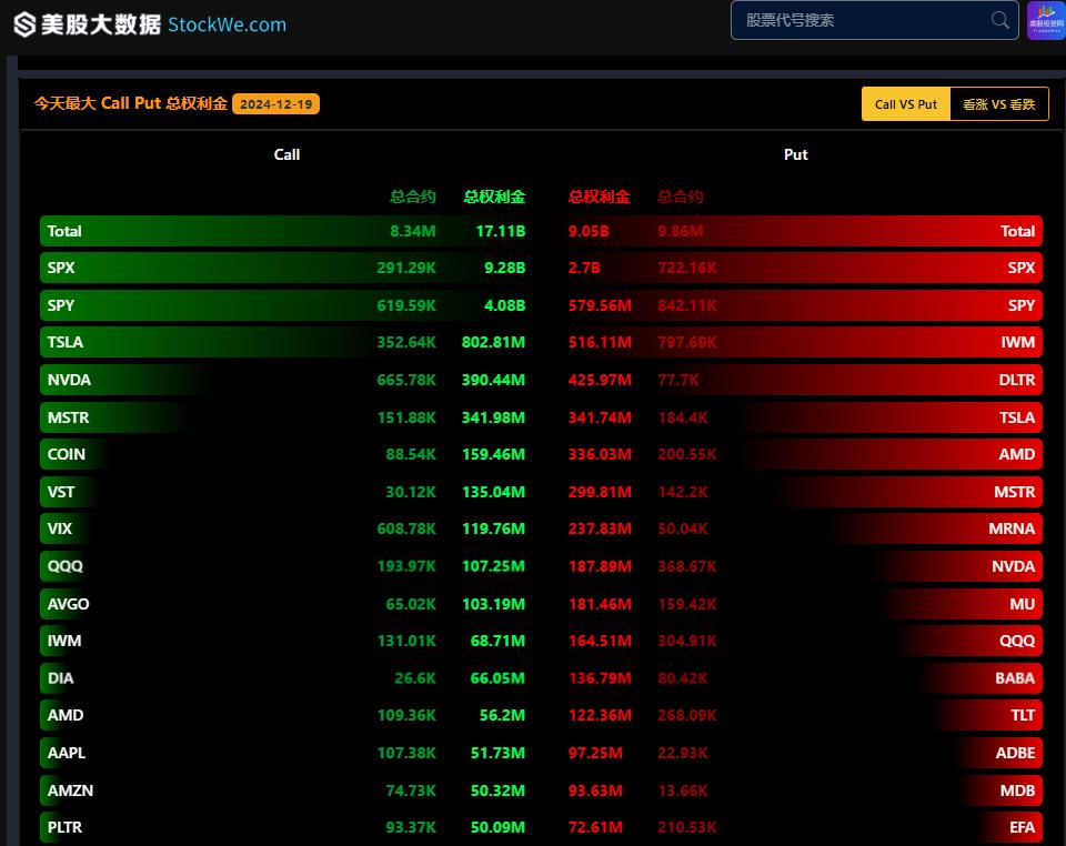 根据美股大数据 StockWe.com AI量化金融终端的数据,在周三市场抛售前,期权仓位显示出明显的看涨倾向,看涨期权的未平仓合约数量远超看跌期权。然而,过去24小时内,市场的期权仓位已发生一定变化,看跌期权的未平仓数量逐渐增加。美股投资网认为,随着这些看跌期权的到期或展期,可能对市场产生一定的稳定作用。期权市场的对冲资金流动可能有助于抑制波动,而非加剧波动
