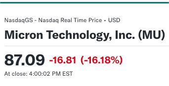 然而,并非所有公司都能迎来市场的青睐。芯片制造商美光的股价跌幅超过16%,原因在于该公司对下个财季的业绩展望仅为“符合市场预期”,未能给市场带来额外的惊喜,导致投资者信心下降。
