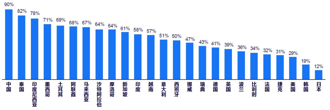 图 9 部分市场对购买中国电动汽车的兴趣 资料来源:理特咨询. 《中国电动汽车:全球汽车市场的动力还是阻力?》