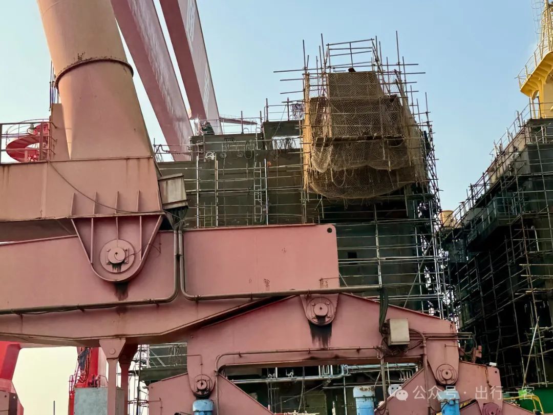 造船就像搭积木,先造前中后分段,再焊接成整船。船厂标志性的龙门吊,就是用来把分段从车间里吊到船坞里,开始露天作业。龙门吊的吨位越大,能吊的重量越大,船厂的实力也一般越雄厚。