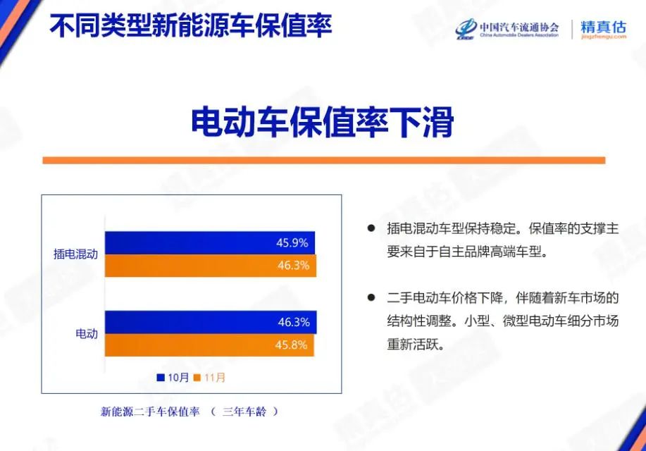 反观新能源车型的三年保值率,插电混动车型为46.3%,纯电车型为45.8%。即使是最保值的保时捷Taycan,三年后的残值也不过57.6%,超过50%的车型数量也不多,并且主要集中在小型车,确实和燃油车的保值率存在一定差距。